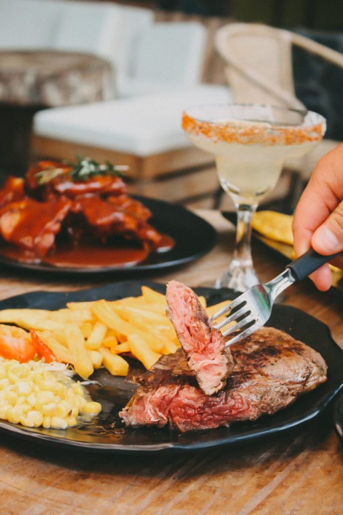 - Corte de 300 gr acompañado de chimichurri de piña y papa rustica.
