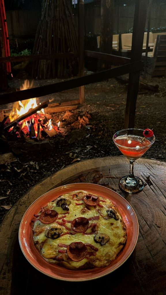 Base napolitana, cama de pepperoni, queso mozzarella, tocineta confitada, cabano y champiñones ( opcional ).